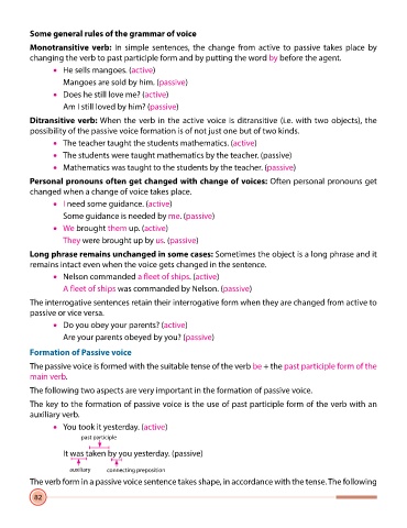 Monotransitive verb: In simple sentences, the change from active to passive takes place by