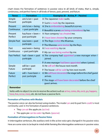 chart shows the formation of sentences in passive voice in all kinds of states, that is, simple,