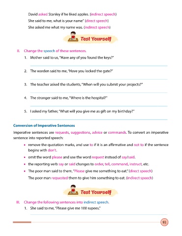 III. Change the following sentences into indirect speech.