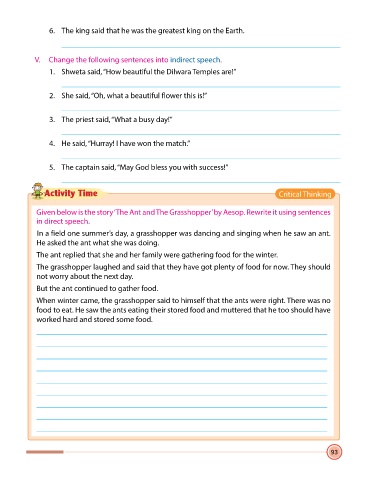 Given below is the story ‘The Ant and The Grasshopper’ by Aesop. Rewrite it using sentences