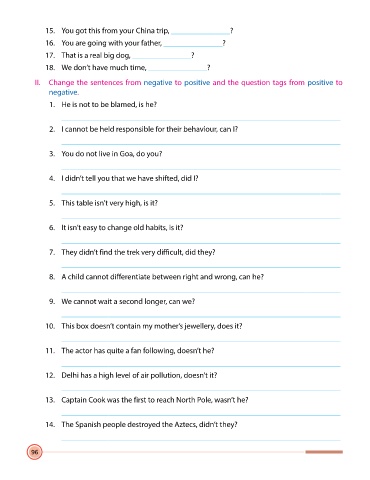II. Change the sentences from negative to positive and the question tags from positive to