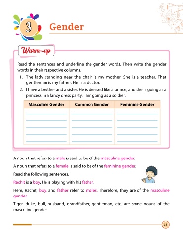 Here, Rachit, boy, and father refer to males. Therefore, they are of the masculine