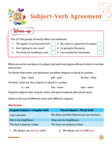 Singular Subject + Singular Verb Plural Subject + Plural Verb