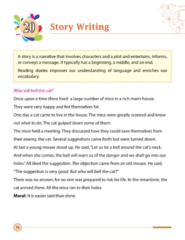 At last a young mouse stood up. He said, “Let us tie a bell around the cat’s neck.