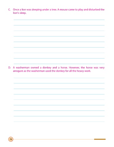 C. Once a lion was sleeping under a tree. A mouse came to play and disturbed the