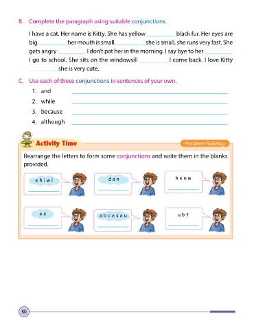 Rearrange the letters to form some conjunctions and write them in the blanks