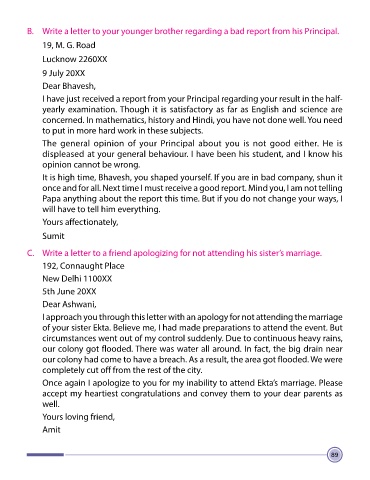 B. Write a letter to your younger brother regarding a bad report from his Principal.