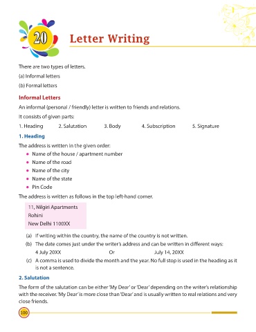 1. Heading 2. Salutation 3. Body 4. Subscription 5. Signature