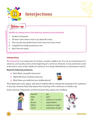 An interjection is an expression of emotion, usually a sudden one. It is not an essential part of a