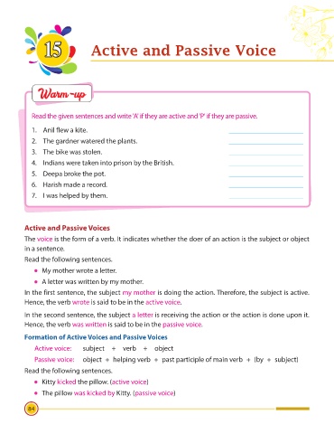 The voice is the form of a verb. It indicates whether the doer of an action is the subject or object