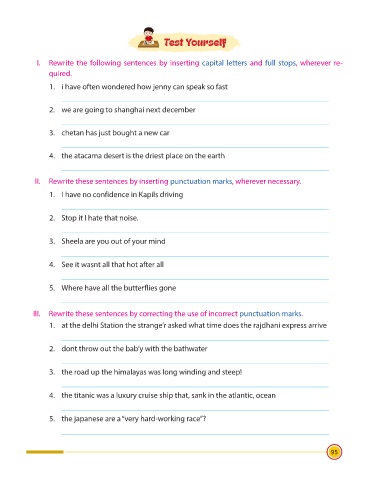 I. Rewrite the following sentences by inserting capital letters and full stops, wherever re-