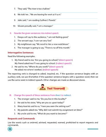 1. My friend said to me, “Are you going to school,” (direct speech)