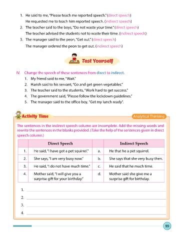 2. She says, “I am very busy now.” b. She says that she very busy then.