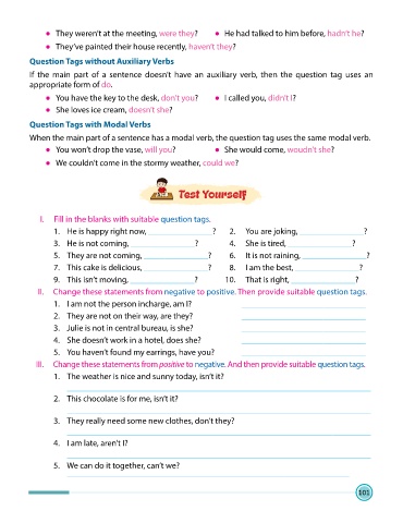 III. Change these statements from positive to negative. And then provide suitable question tags.