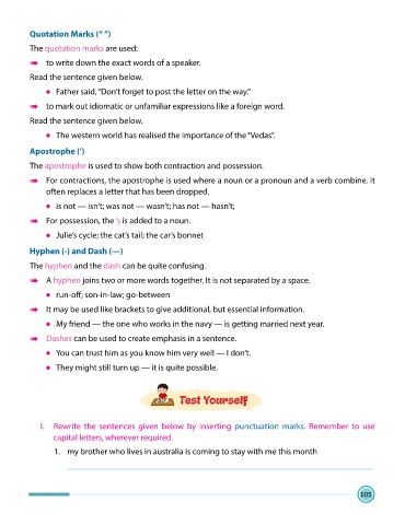 I. Rewrite the sentences given below by inserting punctuation marks. Remember to use