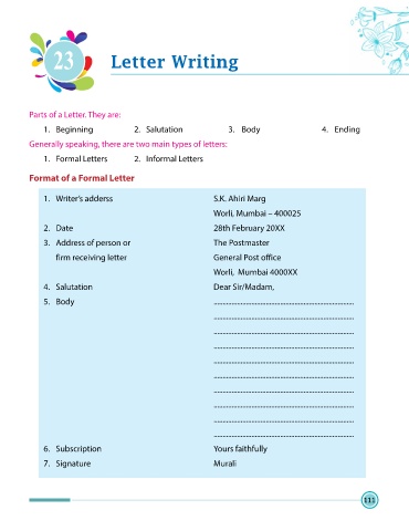 1. Beginning 2. Salutation 3. Body 4. Ending