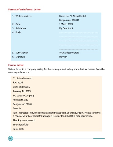 Write a letter to a company asking for the catalogue and to buy some leather dresses from the