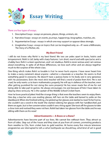 2. Narrative Essays : essays on events, journeys, happenings, biographies, matches, etc.