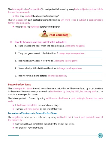 1. I had washed the floor when the doorbell rang. (change to negative)