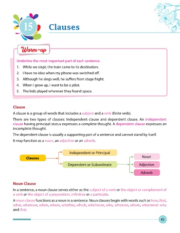 There are two types of clauses: Independent clause and dependent clause. An independent