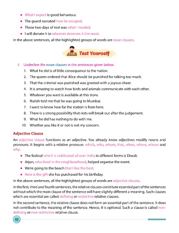 In the above sentences, all the highlighted groups of words are noun clauses.