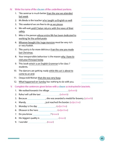 V. Complete the sentences given below with a clause as instructed in brackets.