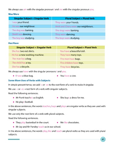 Singular Subject + Singular Verb Plural Subject + Plural Verb