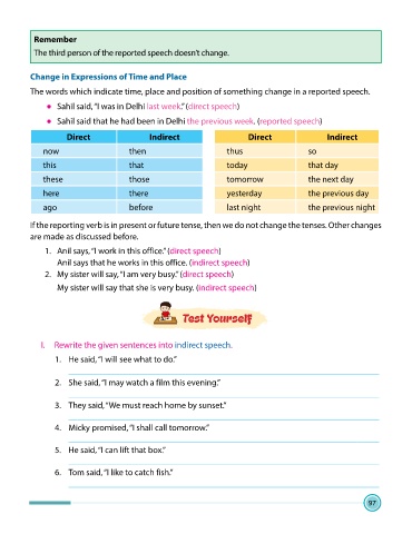l Sahil said that he had been in Delhi the previous week. (reported speech)